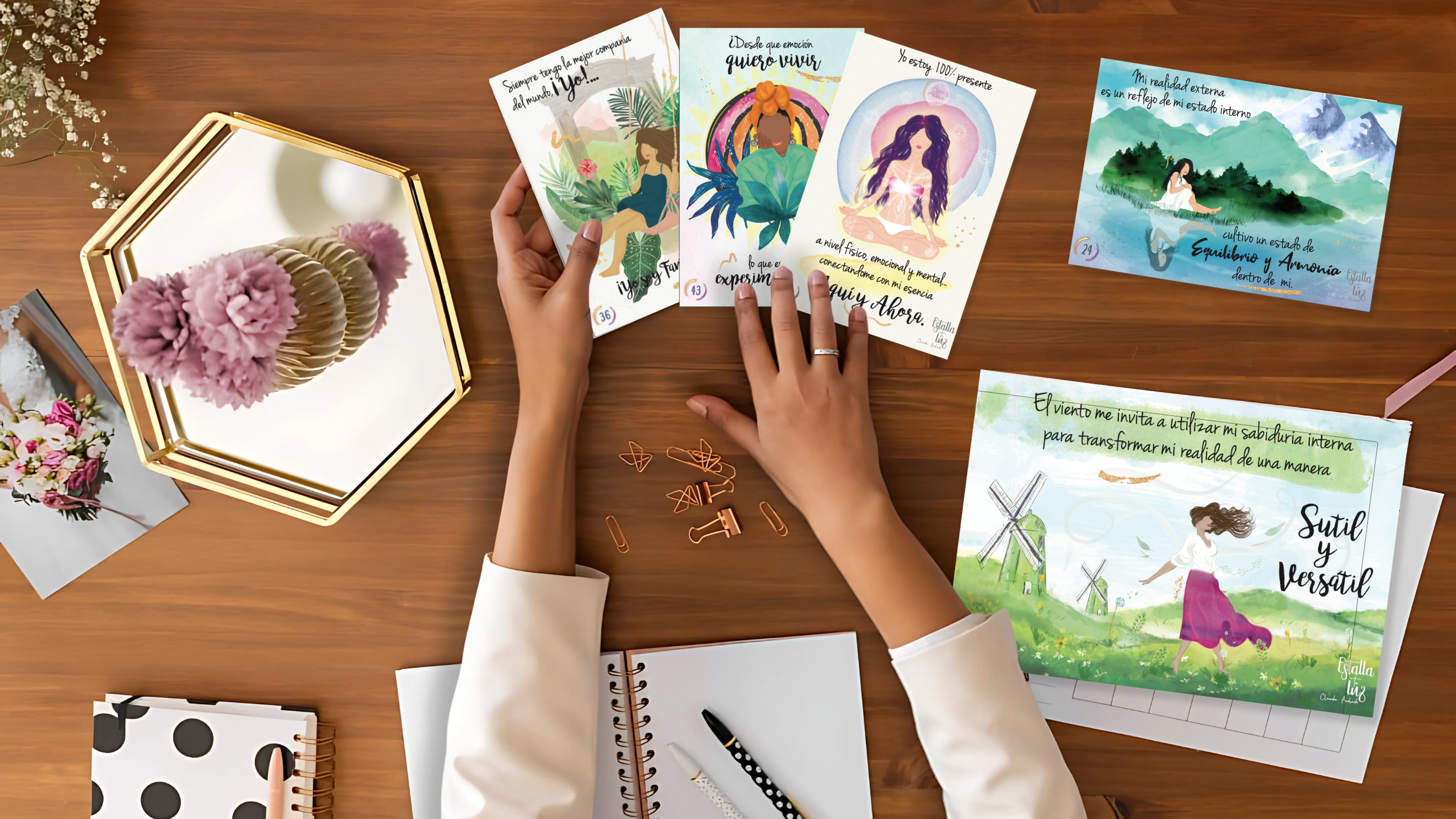 Esta herramienta espiritual, compuesta por 44 cartas y un libro guía, está diseñada para ayudarte a conectar con tu esencia genuina.