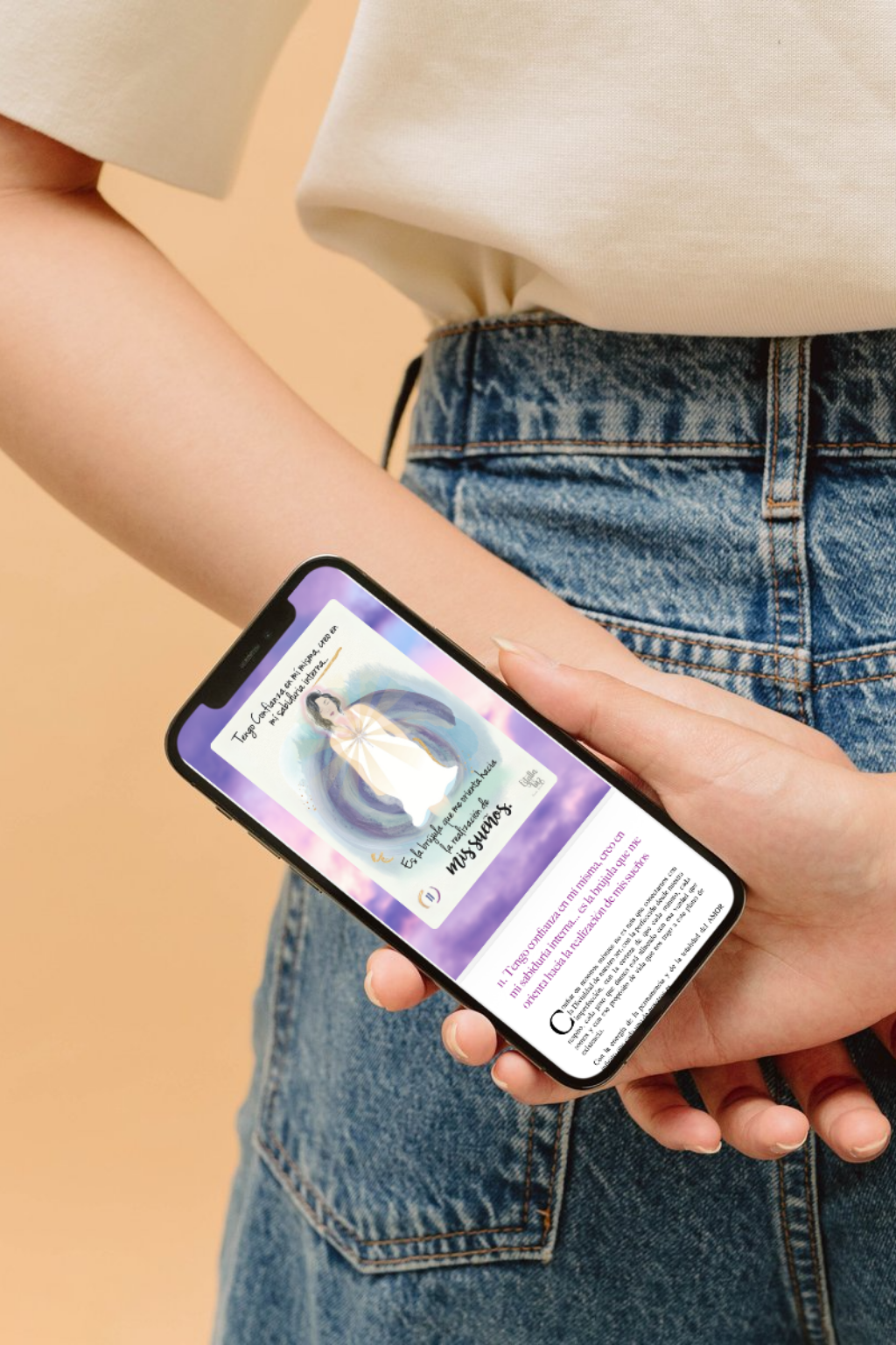 Las 44 cartas digitales vienen en alta calidad listas para usar desde tu dispositivo o imprimir si lo deseas. Son una puerta de acceso a tu mundo interior, siempre disponibles a un clic de distancia.